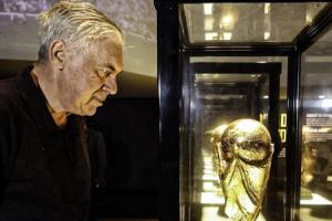 視頻中,安帥仔細(xì)看了看世界杯獎(jiǎng)杯,隨后比劃了一下再放一座獎(jiǎng)杯。