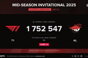 體育資訊7月12日訊 外媒Esports Charts分享AL對戰(zhàn)T1海外峰值,具體如下: