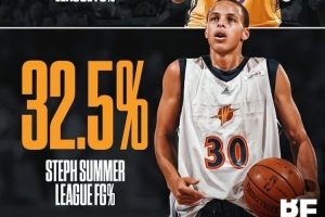 庫里09-10賽季夏聯(lián)場均17.4分4.6籃板4.2助攻,三項命中率32.5/34.5/89.3%