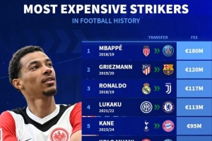 體育資訊7月24日訊 德國轉(zhuǎn)會市場統(tǒng)計(jì)了足壇歷史前鋒(中鋒)的轉(zhuǎn)會價(jià)格,并列出榜單,從法蘭克福轉(zhuǎn)會利物浦的埃基蒂克排名并列第5位。