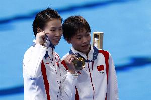 陳芋汐:其實(shí)我昨天的預(yù)賽,包括今天的半決賽,一直都是在調(diào)整自己這樣的心態(tài)。還是感覺很不一樣,包括自己心理上的變化確實(shí)是有,但是一方面其實(shí)我也相信我隊(duì)友在決賽中她也是能發(fā)揮出自己的水平,盡自己最大全力去努力,另一方面我也就不斷的提醒自己,不斷的要相信自己是能做到的,我只要專注于自己的比賽,專注自己的動(dòng)作吧。對于我來說,其實(shí)非常感謝團(tuán)隊(duì),中國跳水隊(duì),也非常感謝所有支持我的教練,領(lǐng)隊(duì)啊,因?yàn)榇_實(shí)沒有他們不斷的去幫助我,我走不到今天,我是真的可能在巴黎奧運(yùn)會(huì)后,我可能就放棄了。