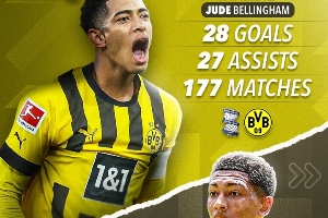 19歲時(shí)177場(chǎng)28球27助攻,效力伯明翰、多特