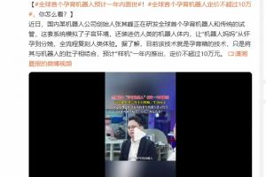 報(bào)道稱,目前該技術(shù)就是孕育箱的技術(shù),只是將其與機(jī)器人的肚子相結(jié)合,預(yù)計(jì)“樣機(jī)”一年內(nèi)推出,定價(jià)不超過10萬元。