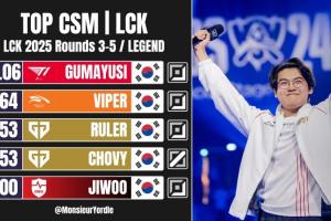 體育資訊8月11日訊 外媒Monsieur Yordle發(fā)布2025 LCK常規(guī)賽3-5輪至今分均補(bǔ)刀排名,具體如下。