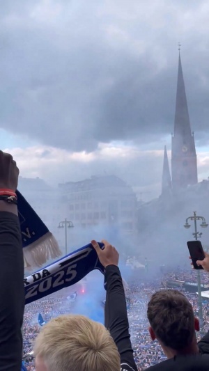 據(jù)圖片報報道,在當?shù)貢r間5月19日下午,漢堡進行了游行。有10萬球迷參與慶祝。