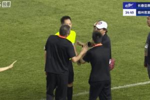 之后長(zhǎng)春亞泰斷球發(fā)起進(jìn)攻,卡米洛完成破門。VAR審核后,主裁判王迪維持進(jìn)球有效。梅州教練組工作人員激動(dòng)向主裁下跪,隨后被人拉起來(lái)。