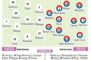 體育資訊8月19日訊 北京時(shí)間明天凌晨3點(diǎn),皇馬將在西甲首輪比賽中主場(chǎng)對(duì)陣奧薩蘇納。西班牙媒體《馬卡報(bào)》預(yù)測(cè)了皇馬此役的首發(fā)陣容,姆巴佩、維尼修斯、迪亞斯組成三叉戟。