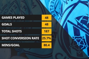 Opta統(tǒng)計(jì)了哈蘭德在英超主場比賽的進(jìn)球數(shù)據(jù),他出戰(zhàn)48場英超主場比賽,打進(jìn)48球,而英超歷史唯一在少于50場主場比賽中打進(jìn)50球的是希勒,他只用了47場比賽。