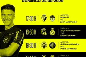 體育資訊8月23日訊 西甲官方更新社媒動態(tài),公布了當?shù)貢r間8月24日(本周日)四場比賽的裁判安排。