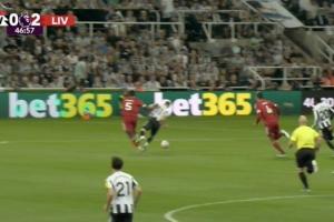 這一畫面發(fā)生于第47分鐘,當(dāng)時(shí)利物浦多打一人2-0領(lǐng)先。紐卡反擊,巴恩斯前插,科納特補(bǔ)防,前者倒地,裁判未吹罰,VAR未介入,吉馬良斯抗議判罰因此吃到黃牌。