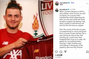 體育資訊9月2日訊 埃利奧特已經(jīng)官宣加盟維拉,他也通過社媒發(fā)文告別利物浦: