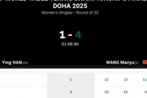王曼昱下輪對陣羅馬尼亞選手斯佐科斯。