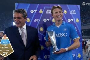 體育資訊05月24日訊 意甲第38輪,那不勒斯2-0擊敗卡利亞里,鎖定意甲冠軍。上半場(chǎng)麥克托米奈打入凌空側(cè)鉤,幫助球隊(duì)先開紀(jì)錄,同時(shí)也成功當(dāng)選本賽季意甲MVP。