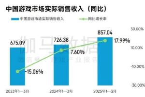 體育資訊05月25日訊 伽馬數(shù)據(jù)今日發(fā)布《2025年1-3月中國游戲產(chǎn)業(yè)月度報告》,數(shù)據(jù)顯示今年1-3月中國游戲市場規(guī)模為857.04億元,同比增長17.99%,環(huán)比下降1.21%。