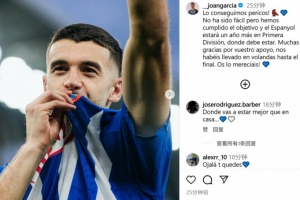 體育資訊5月25日訊 西班牙人本賽季保級(jí)成功,球隊(duì)門將喬安-加西亞發(fā)文慶祝。